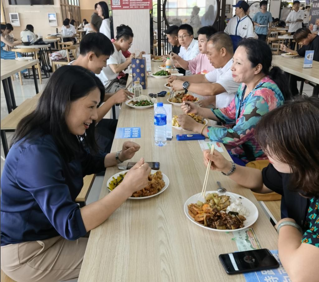 典礼结束后,学院领导班子成员、毕业班辅导员和教师代表在校内西苑食堂陪同毕业生共进午餐,向毕业生送上诚挚的祝福,询问毕业生的未来去向和职业规划。毕业生们则畅所欲言,分享四年感人回忆,表达其对未来的期待和向往。