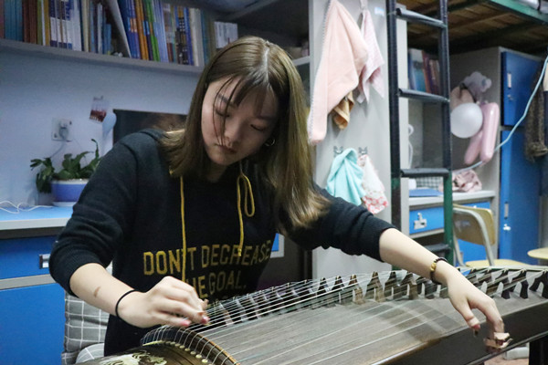 找乐谱、分工、熟悉曲调……寝室四个人花了一个晚上时间练习《盗将行》这首歌。“刚开始的节奏配合不是很好,后来几个人反复练习,最后呈现出来的是让我们满意的歌曲。”闫幸梓说。清脆悦耳的古筝声和舒缓优美的钢琴声相互映衬,使得寝室版的《盗将行》获得了不少朋友的称赞。