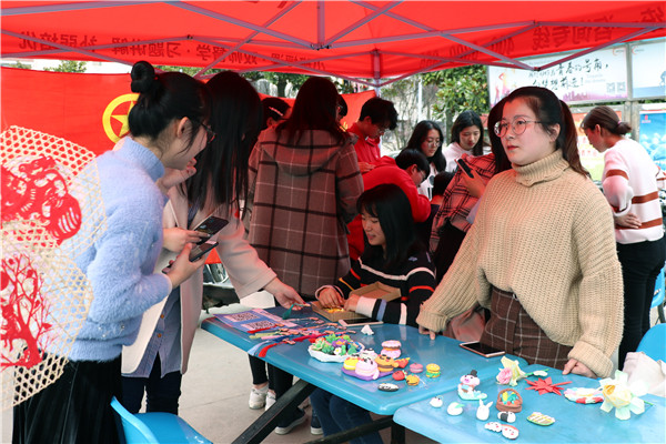 用超轻粘土做的各种卡通人物,蛋糕托盘做的装饰挂件……五颜六色的小玩意吸引了不少同学前来观看。“早就听说教师教育学院的女生真的是心灵手巧,今天总算见识到了。”电子信息科学与技术专业2018(2)班的鲍岩说,“这些小玩意十分可爱,还有动漫里面的角色,我很喜欢。”
