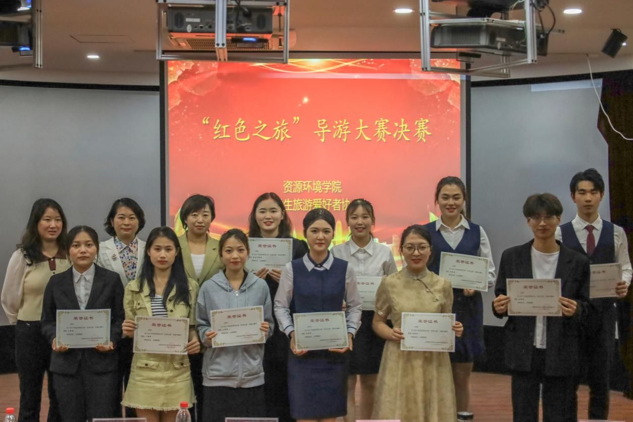“追寻红色记忆,传承红色精神。游客朋友们大家好,我是今天的导游员……”5月10日,资源环境学院在F楼411教室举办“红色之旅”导游大赛决赛。共有十位选手从初赛中脱颖而出,晋级此次决赛,100余名学生到场观赛。