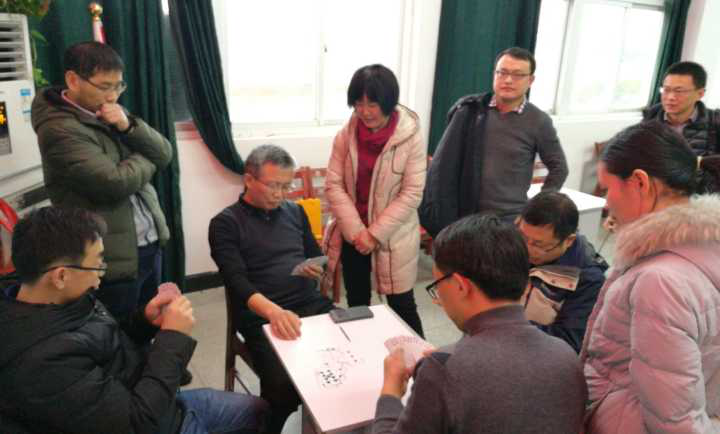 为进一步丰富学院教职工的业余文化生活,促进交流,愉悦身心,营造欢乐、祥和的迎新氛围,12月26日下午,物理与电气工程学院在学院会议室举办了教职工掼蛋比赛。