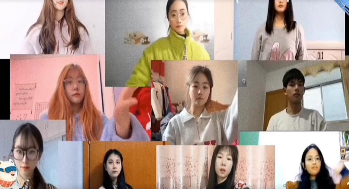 伴随着一支动感音乐,体育表演专业2021级(2)班的学生们用手势舞进行表演。“我们特意选择这首贴合冬奥主题的歌曲进行手势舞的练习与展示。”该班班长体育表演专业2021级(2)班的姚羽晗表示,尽管在寒假期间不能将班级同学组织在一起进行集中展示,但班上的同学们仍然十分配合学习。“大家热情都很高,在不到三天的时间里,全班同学就录制好了个人视频。”