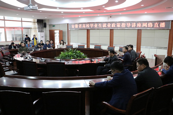 安徽省人社厅就业促进和失业保险处副处长唐晓峰着重解读了促进高校毕业生就业创业政策,解析2019年就业形势,并就如何提升就业能力、求职面试准备等进行指导。此次网络直播活动采取线上专题讲座和线下现场答疑相结合的方式,让2019届高校毕业生知晓国家及安徽省就业优先政策、了解享受扶持政策和公共服务的途径、把握当前的就业形势、树立正确的就业观念,促进高校毕业生实现更充分和更高质量就业。