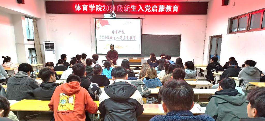 近期,体育学院分专业分批次组织开展新生入党启蒙教育活动,学院党委副书记高栋梁深入各班级,与新生班级辅导员老师一起对2021级新生进行了对党的基本知识理解和认识的启蒙教育。