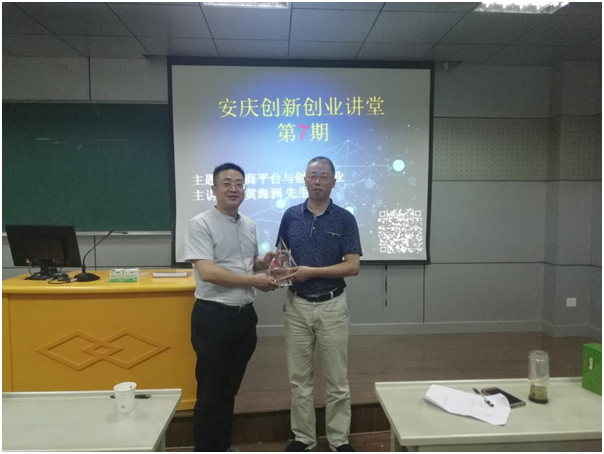 李亦亮在对本次讲堂点评时认为黄海洲先生是一个有思想、有毅力、有情怀的企业家,黄先生的创新创业心路历程值得同学们深度思考。他希望广大同学要努力珍惜在学校学习和实践的良好机会,努力把自己培养成有较高就业能力和较强创业能力的现代流通管理专业“两能型”人才。李亦亮代表经济与管理学院向黄海洲先生赠送了“安庆创业创新讲堂”纪念品。(洪亮)