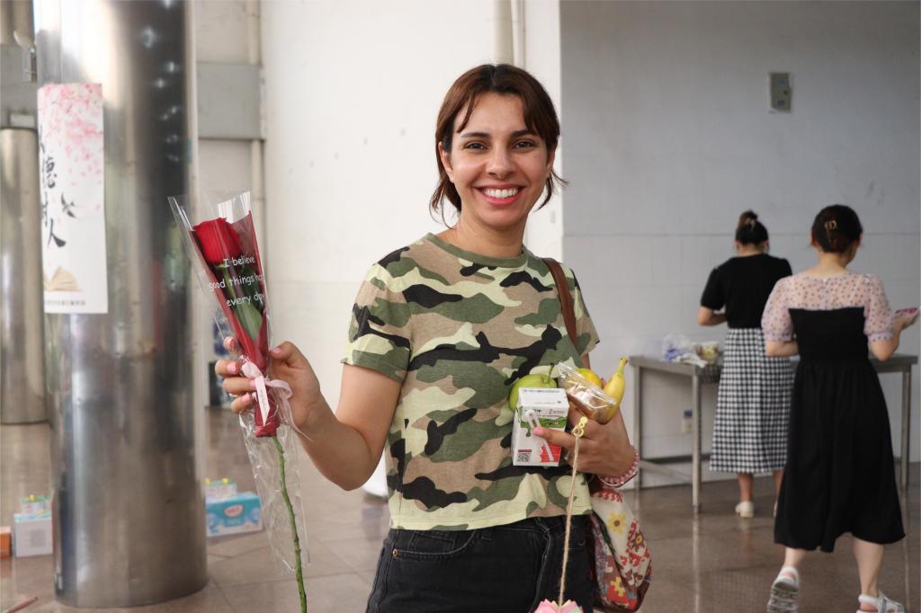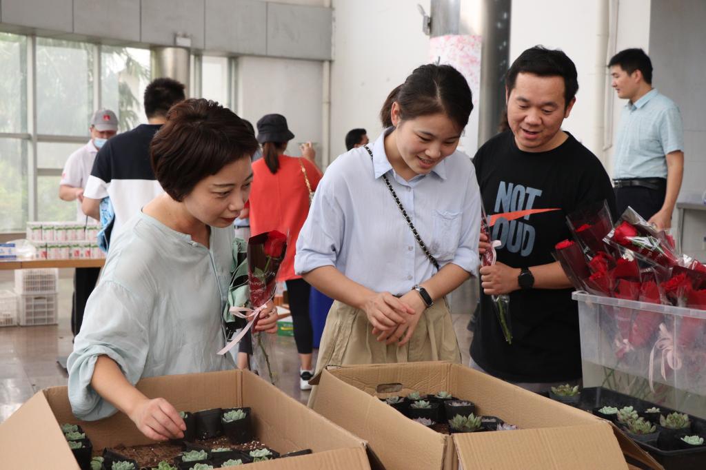 随着下课铃声的响起,前来食堂就餐的教师逐渐增多,他们一走进食堂便迎来了食堂工作人员的热情招呼。“这些食品可以免费品尝,水果自取!”“可以在这里领取一支玫瑰花或一盆多肉植物!”“老师们可以在这边领取月饼,提前祝大家中秋节快乐!”……在工作人员的指引下,现场教师纷纷前往不同摊位领取“大礼包”,形态各异的精致面点更是让许多教师爱不释手并留下了合影。