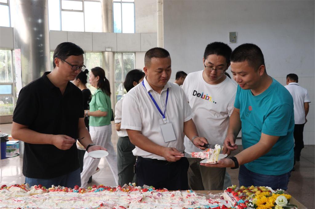 “考虑到教师节和中秋节是在同一天,我们特意购买了3000多个紫薯、蛋黄、草莓、凤梨等不同口味的月饼,祝各位老师‘双节’快乐。”食堂经理吴业清专门购买了600多份多肉植物、100多支玫瑰、270多瓶纯牛奶等饮品,以及桃子、橘子、大枣等水果。为了保证教师可以尝到新鲜的面点,食堂员工从早上4点就开始忙碌,并定做了一个写有“迎接党的二十大,培根铸魂育新人”2.8米长的大蛋糕。