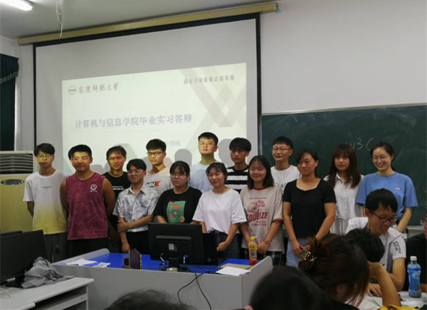 本次集中实习实训一共21天。31日上午8:30,该院举行毕业实习实训项目汇报答辩。233名学生共分15小组,分别安排在稼先楼南311、308、307、304四个教室进行,每个教室有5-6名指导老师参加。按照要求,每个小组10-15分钟时进行汇报,包括答辩组长用PPT进行了项目介绍、开发人员进行项目功能演示等,最后由指导老师进行提问与点评。