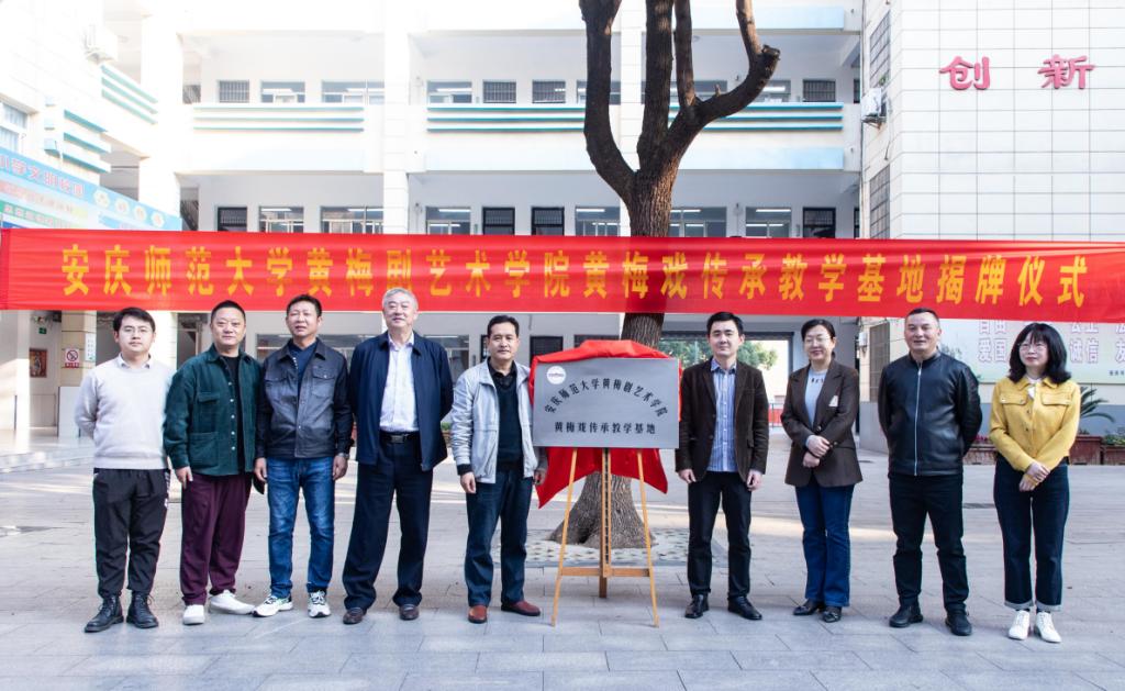 11月10日,黄梅剧艺术学院与安庆市大观区德宽路第二小学举行黄梅戏传承教学基地揭牌仪式。学院教学督导金根山、副院长储著炎、副院长刘国平,大观区副区长黄瑾,区教体工委书记、局长蔡红旗,德宽路二小校长王旺盛,副校长方卫斌、程厚来等出席揭牌仪式。