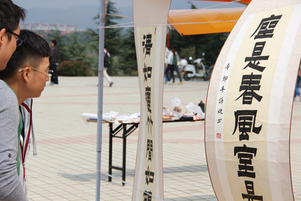 “这次现场作品我们都会保留下来,新生作品同样也是新鲜的血液。这次展览会主要是展现书法的艺术价值,丰富大学生的校园生活。”宋永乐说,“作为协会招新前的活动,我们同样也是为了宣传协会,希望更多喜欢书画的同学能加入我们。”(文/学生记者:程鹏 图/学生记者:钱成)