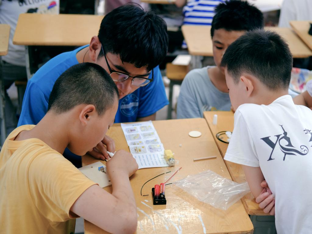 支教过程中,队员们热情洋溢,给皖江小学二年级的孩子们带来了一场别开生面、妙趣横生的手工课。队员们耐心的讲解,细心的制作,热心的帮助都在一步步地给孩子们送去知识和欢乐;孩子们反响热烈,纷纷合照的笑脸也给辛勤付出的队员们最好的回报。