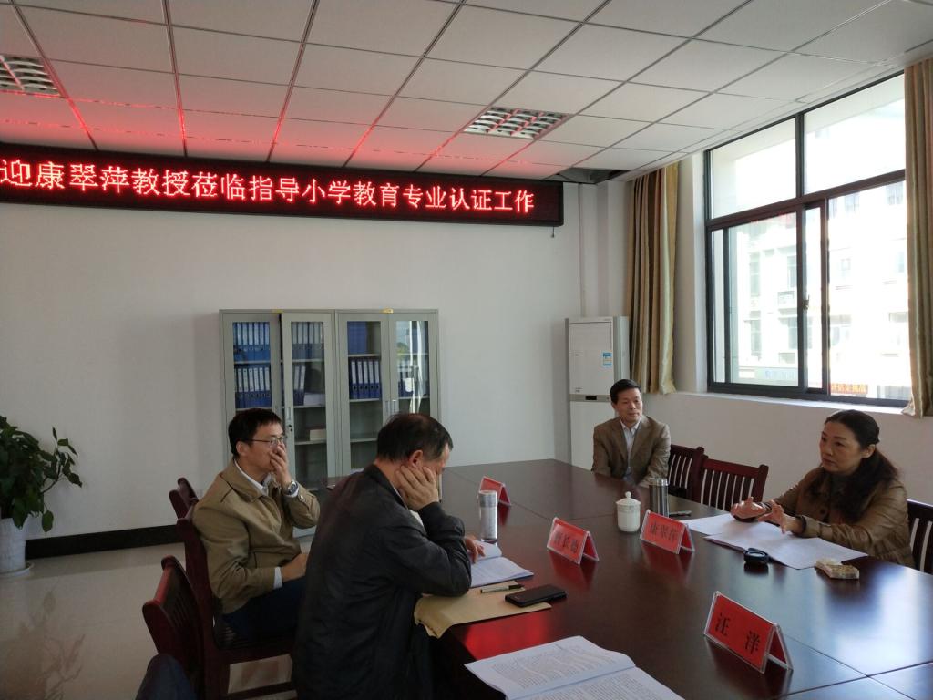 会上,曹长德首先表达了对康翠萍教授的热烈欢迎,并感谢她在百忙之中抽空指导。小学教育专业负责人王爱菊教授就专业概括、自评报告等内容进行了汇报。康翠萍教授通过听取汇报、查阅资料,就专业认证的重要环节和材料建设等问题与学院进行了充分而深刻的讨论。康翠萍认为,小学教育专业认证的自评方案基本合理,自评报告等材料建设工作正按进度推进,对于存在的问题,康翠萍予以详细指导,提出了具体整改意见。