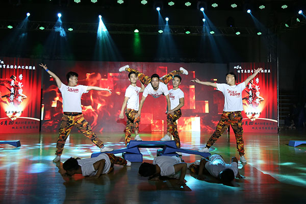 为了本次演出,2015级体育艺术表演专业的同学们进行了将近一个多月的反复排练。体育艺术表演专业2015(3)班的徐敏捷表示,团体表演最重要就是合作与配合,“我们在排练过程中难免会出现各种各样的分歧,但是在经过磨合之后都得到了很好的解决,这更让我体会到了团队协作的重要性。”(文/学生记者 黄倩 图/学生记者 刘敏 李庆侠)