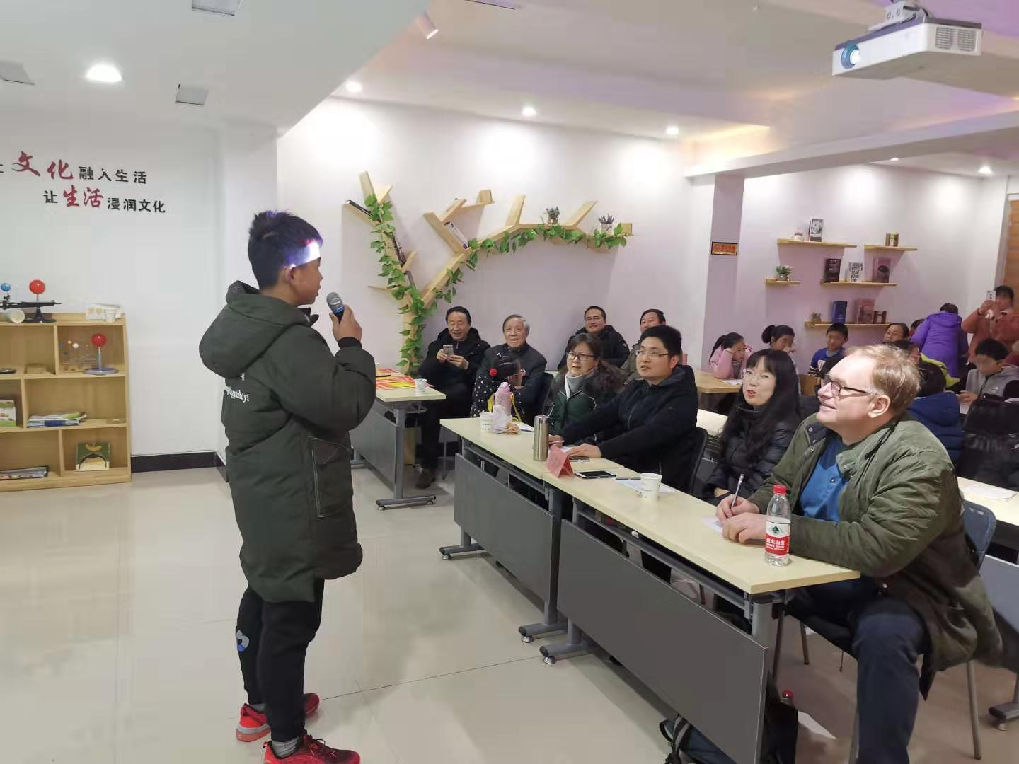 12月28日下午,一场激烈的英语演讲比赛在迎江区锡麟社区英语角活动室如火如荼地进行着,外国语学院商务英语教研室党支部党员教师和外教Dave老师应邀担任评委。随着各类奖项的评出,也为本学期的英语角活动画上了圆满的句号。