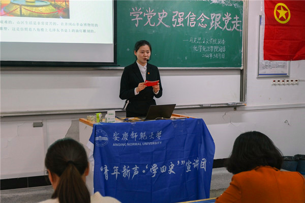 据了解,“青年新声 ‘学四史’宣讲团”是由校习近平新时代中国特色社会主义思想研究中心、校团委联合指导成立的。去年宣讲团以线上直播、拍摄“厉行勤俭节约,反对铺张浪费”思政课视频等形式带动全校共同学习,今后宣讲团将继续带领大家学习党史和其他重要理论。