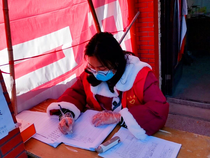 2016级英语专业的刘莹莹是一名预备党员,在家乡发生新冠肺炎疫情以后,刘莹莹第一时间赶到村部,主动要求承担起辛集村防疫点车辆排查和疫情宣传等工作。“如今疫情形势严峻,我现在想专心做一名志愿者,为村里做好疫情防控工作,为家乡贡献自己的一份力量。”刘莹莹认真说道。
