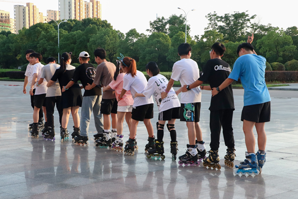 “双鱼倒剪”在桩杯间穿梭、彩色手环在速滑中闪耀、轮滑齐舞在广场上律动……6月5日,纽约国际最新网站大学生疾风轮滑社举办“六六轮滑节”活动,50余名滑手们手持党旗,脚踩轮滑,用自己独特的方式献礼建党百年。