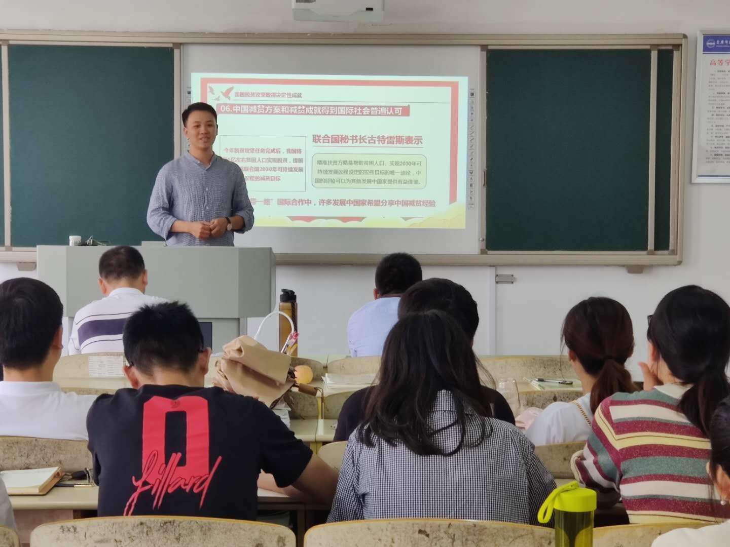 备课会上,李俊、田梦甜和汪健三位老师分别围绕“坚决夺取脱贫攻坚战全面胜利——全面建成小康社会与中国道路”、“坚决打赢疫情防控阻击战和防汛救灾这场硬仗”和“培养担当民族复兴大任的时代新人——坚持把立德树人作为根本”专题作公开课教学展示。李俊运用可视化的方法展示十八大以来我国脱贫攻坚取得的显著成就;田梦甜结合疫情防控和防汛救灾的感人事例讲解伟大的抗疫和抗洪精神;汪健运用细、小、实接地气的方式宣讲习近平总书记关于教育的重要论述。三位老师的公开课展示精彩纷呈,引来了听课教师的阵阵掌声。