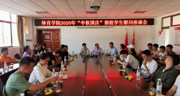 9月30日下午,体育学院体育馆三楼会议室其乐融融,气氛热烈!学院在此召开了 2020年中秋国庆留校学生慰问座谈会。体育学院党委副书记高栋梁出席会议,体育学院大一到大四各年级留校学生共计30余人参加了会议。