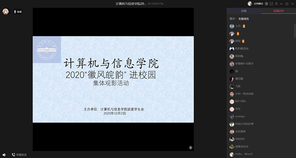 10月2日晚19时,计算机专与信息学院组织留校学生在线观看了一场别开生面的节目,领略了黄梅戏的魅力,这是2020年校园大舞台—徽风皖韵进高校活动,通过线上会场播放“有戏安徽 点亮剧场”—全省十六剧场复苏演出季活动首场演出黄梅戏《红楼梦》。