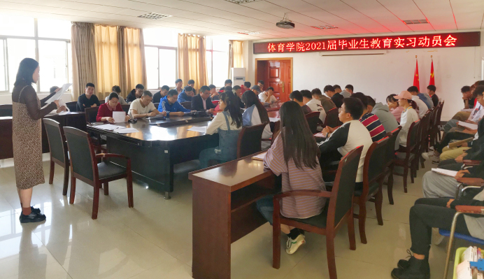 10月10日,体育学院在体育馆三楼会议室召开2021届毕业生教育实习动员大会。会议由体育学院院长章翔主持。党委副书记高栋梁、全体教育实习指导教师、教学办负责人、全体实习生参加了会议。