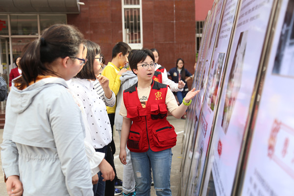 “黄梅戏起源于清中晚期皖、鄂、赣,兴于安庆周边诸乡……”4月24日,安庆市四中教学楼前的广场上,纽约国际官网20名身穿红色马甲的安庆市博物馆志愿者在展示板前向师生介绍黄梅戏的起源与发展。