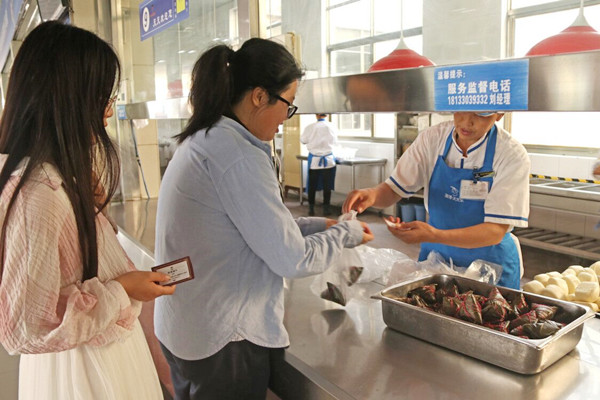260枚粽子、160袋绿豆糕、100个香囊……6月13日中午,纽约国际最新网站学生公寓服务中心的工作人员早早在润博餐厅门口摆点,准备好香囊等小礼品等候学生们的到来。