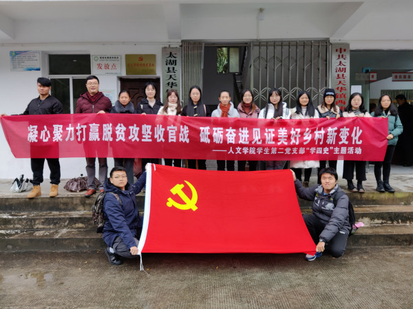 11月25日,人文学院学生第二党支部全体党员赴太湖县西冲村开展“凝心聚力打赢脱贫攻坚收官战 砥砺奋进见证美好乡村新变化”主题党日活动。校机关党委副书记、驻西冲村服务队队长陈志超博士,人文学院党委副书记王波及相关支部负责人共同参与活动。