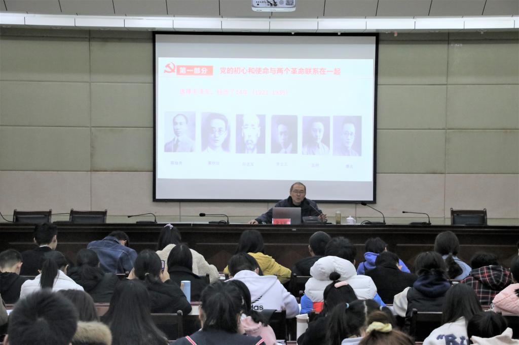 11月29日,马克思主义学院党委书记金文斌教授为第十二期青马班全体学员开展“从党的历史谈中国共产党人的初心和使命”专题讲座。