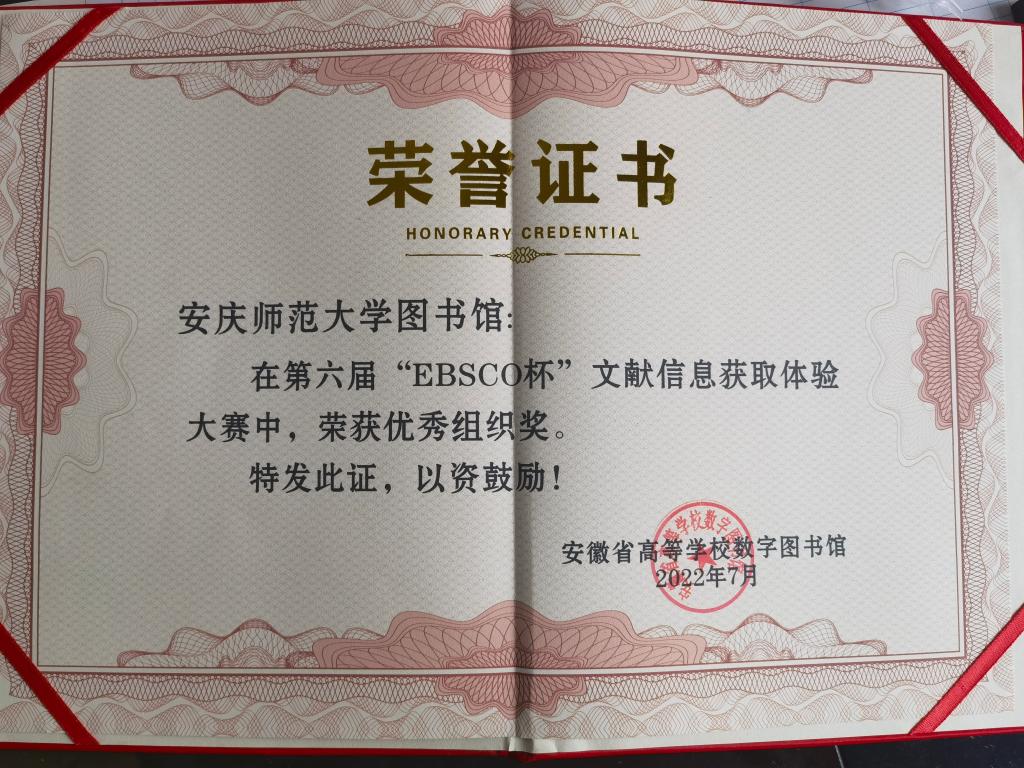 在刚刚结束的“微影流光 恰少年”安徽省高校图书馆第六届EBSCO杯文献信息获取体验大赛,纽约国际官网学生陈婷获得一等奖,王元骋、王震获得三等奖,图书馆胡瑞老师获得优秀指导教师奖,纽约国际最新网站图书馆获得年度优秀组织奖。