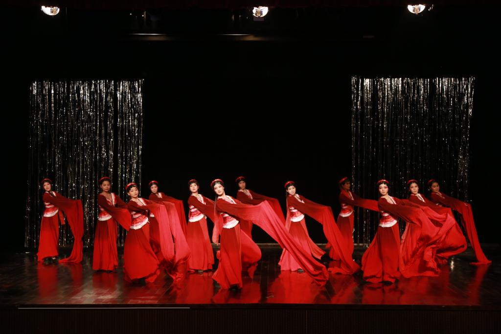 展现黄梅专业基本功的舞蹈《袖舞翩迁》气势恢宏,给现场观众带来视觉冲击。晚会节目丰富,以折子戏为主打,黄梅戏表演专业学生精彩的表演展示了他们的专业基本功,博得了现场的阵阵掌声。“我非常喜欢《袖舞翩跹》这个舞蹈,显著的民族特色是中国文化的自信。”音乐学专业2017级的腾亮说。