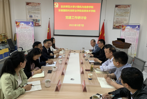 5月7日,安徽国防科技职业学院党委委员、信息技术学院院长黄存东一行来纽约国际官网考察交流高校党建“双创”和全国样板支部培育工作,在计算机与信息学院教师第三党支部活动室开展了学党史强党建专题研讨会。计算机与信息学院班子成员及教师第三党支部的教师代表参与了交流研讨。