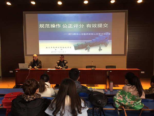 王琦指出,一名合格优秀的教师至少要具备四种素质,即高尚的职业道德、扎实的专业知识、精湛的专业技能和良好的职业素质,并就中小学教师资格认定面试中的重点和难点进行了分析,就面试中所包含的面试大纲、内容和程序这三大版块的内容进行了逐一讲解。
