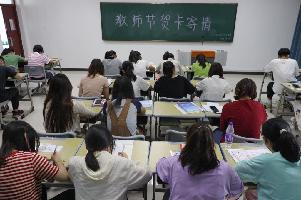 教师节“撞上”开学日,鼓励新生们给高中老师写一封信,这既是对过去生活的总结与感念,也能够表达对未来的展望与期待。“组织此次活动,是希望通过写信的方式为学生们提供一个表达感恩、寄托情思的平台,弘扬中华民族尊师重道的优良传统,更是教育的传承。”该院团委负责人田梦甜在收到来自学生们的手写贺卡后,表示十分自豪。“希望思想政治教育专业的同学们能够牢记老师们的谆谆教诲,传承老师们甘为人梯的奉献精神,接过‘接力棒’,始终牢记作为一名思政专业学生的使命,努力成为一名优秀的思政课教师。”(撰稿:学生记者 余胜兰 朱惊笋 摄影:学生记者 柳照雪 刘菁 编辑:范龙超 审核:赵丽丽)