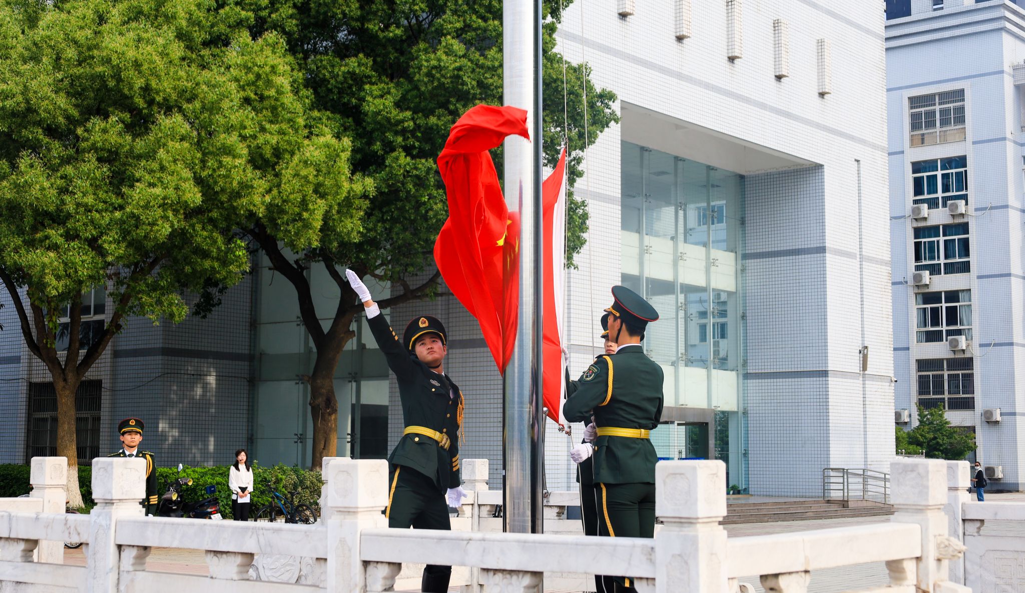 迎着清晨的曙光,国旗护卫队方阵迈着整齐划一、铿锵有力的步伐走向升旗台,雄壮的国歌在敬敷广场唱响,五星红旗高高飘扬。“每当国旗升起的时候,我心中总是有一股强烈的自豪感与使命感。”国旗护卫队成员、体育教育专业2022级(1)班的姜荣先感叹。