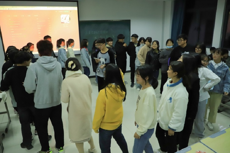 “爱的抱抱”“画画接力”“飞花令”等游戏互动环节则把课堂的理论知识转化为实际运用。随着句句游戏口号声的喊起,大家笑着组队拉圈,将活动气氛推到了高潮。“虽然刚开始大家在玩游戏时都略显拘谨,但是随着游戏的开展,大家都逐渐敞开心扉变得积极活跃起来”,王军同学说。