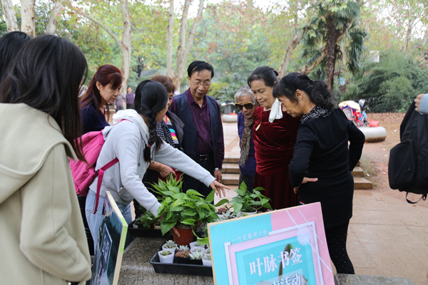 由于叶脉书签很受欢迎,活动开展的第一天就已经基本卖完,为此,志愿者们还准备了绿萝、多肉等绿植摆放在桌面,供同学们挑选。“刚经过食堂就注意到了这个活动,听了志愿者们的介绍,我对尘肺病患者这个群体有了更深的了解,想献出自己的一份爱心。”数学与应用数学专业2018(3)班的王诗茹说。