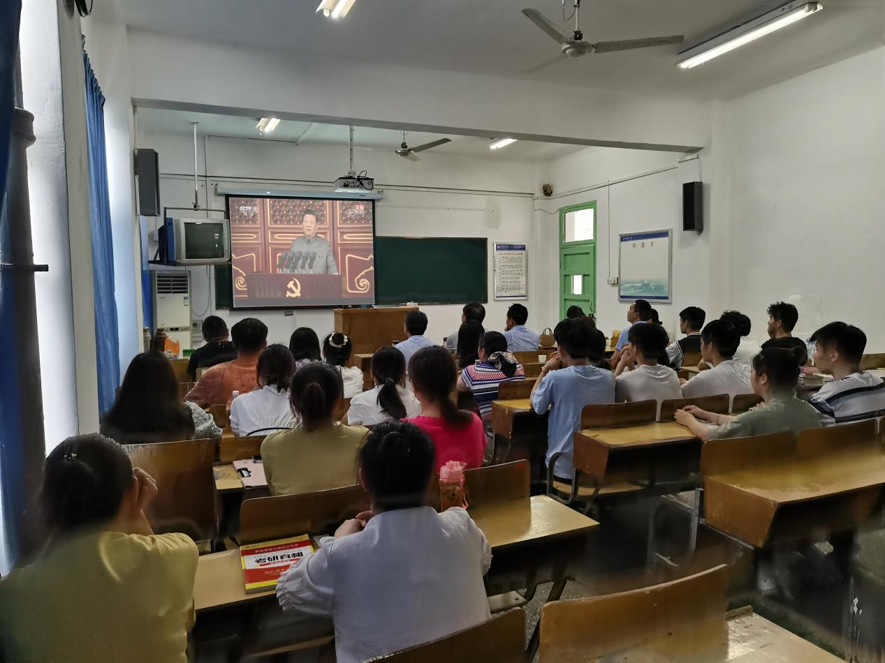 观看现场,全体师生聚精会神,认真聆听,仔细记录。大家一致认为:习近平总书记的重要讲话,高屋建瓴,思想深邃,鼓舞人心,催人奋进。