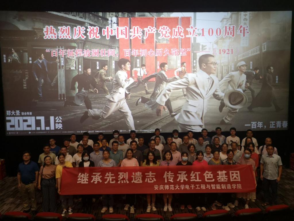 为深入开展党史学习教育,庆祝中国共产党成立100周年,激励师生党员的党史学习教育热潮,继承先烈遗志、传承红色基因,7月3日,电子工程与智能制造学院党委组织师生党员集体观看了红色主题电影《1921》。