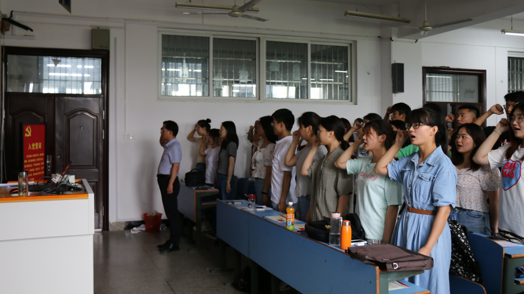 为使学生党员牢记入党誓词,铭记党员身份,在党课开始之前,开展了新党员宣誓和老党员重温入党誓词活动。全体学生党员面向党旗,举起右拳,在詹德全的领誓下,用慷慨激昂的语气,庄严神圣向党旗宣誓,表达对党的忠诚、为共产主义事业奋斗终身的决心。大家纷纷表示,今后时刻不忘党组织的培养与期待,坚定听党话跟党走的信念,在新时代新征程中,奋发有为,不负众望。(撰稿:陈娟娟 摄影:任佰慧 审核:詹德全)