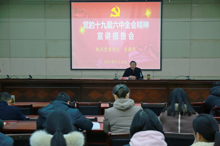 12月24日,党委常委、机关党委书记余精华在行政楼一楼会议室作了题为“深刻领会党的十九届六中全会核心要义”的宣讲报告,引导机关党员干部深入学习领会全会精神,不断提升担当初心使命的政治自觉、思想自觉和行动自觉。