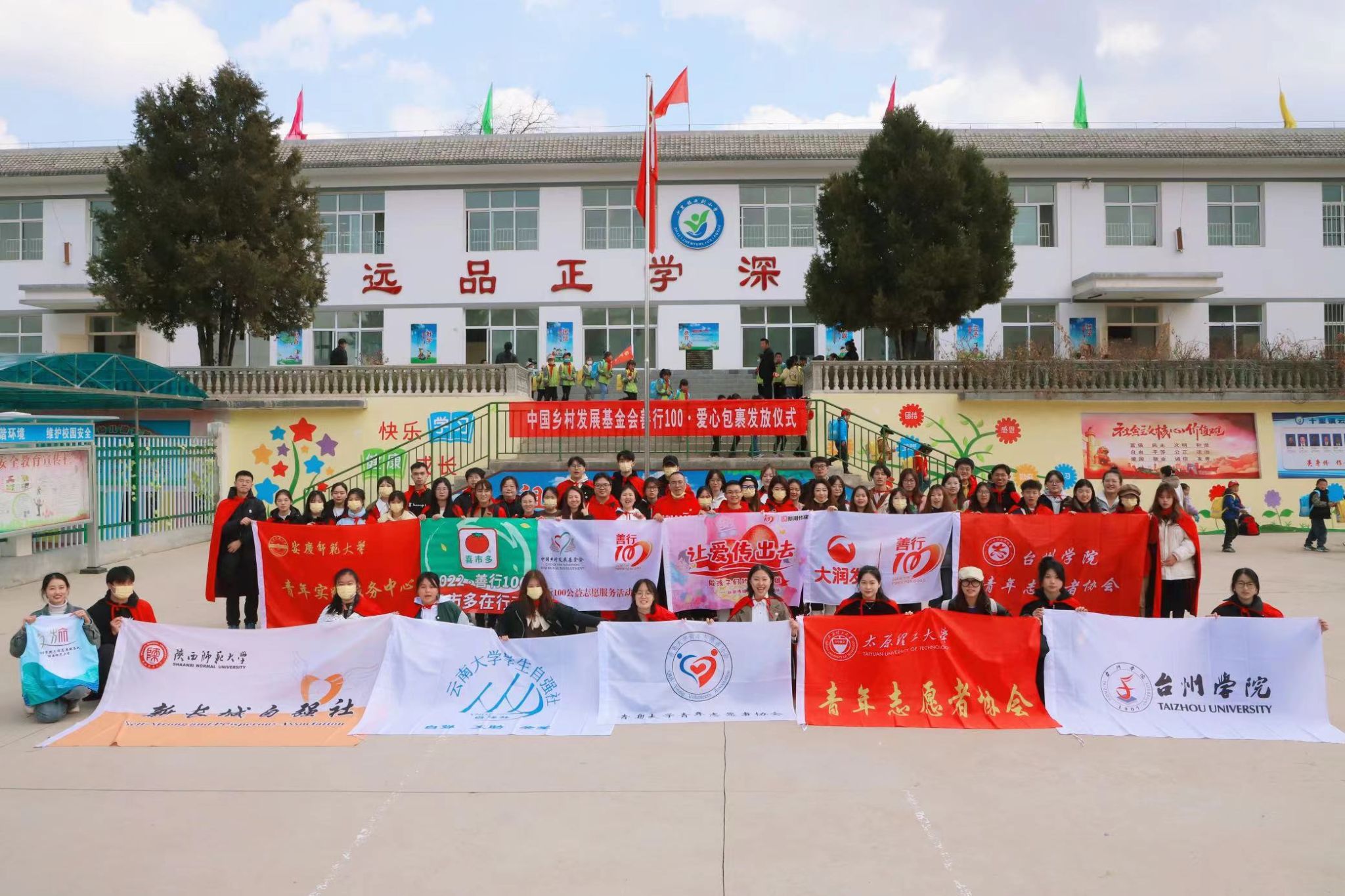 3月26日至28日,纽约国际官网受邀参加中国乡村发展基金会组织的“2022善行100探访活动”,全国26所高校师生志愿者、企业代表同赴甘肃省陇南市西和县十里镇云刘小学。校团委副书记叶丹及师生代表参加此次活动。