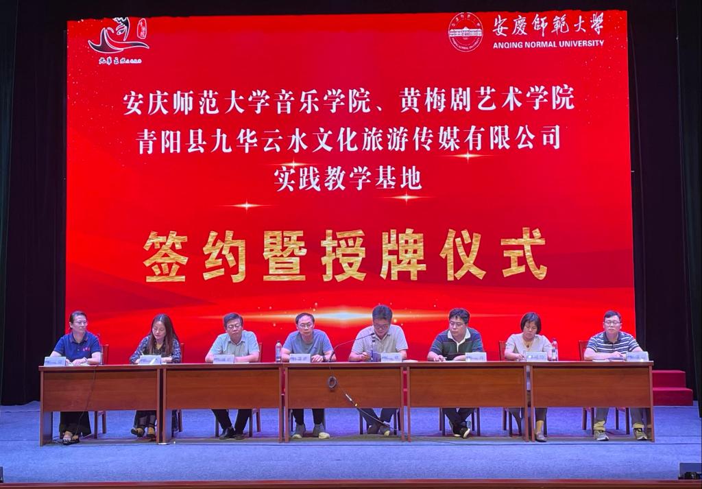 九华云水文旅公司(青阳腔)作为安徽省非物质文化遗产传承基地,以传承发展保护国家级非遗代表性项目青阳腔、九华民歌等青阳非遗文化为特色。实践教学基地的建立,对于两个学院拓展校企合作领域、传承中华优秀文化、提升人才培养质量、促进学科建设等都将具有积极意义。(撰稿:方尧杨 摄影:孙艺铭 编辑:江伟 审核:徐冉 赵丽丽)