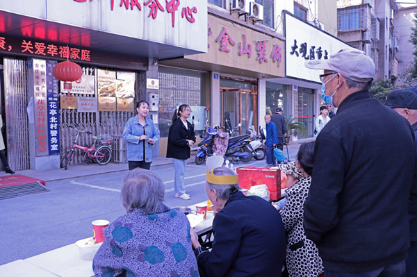 与此同时,学生志愿者们和社区工作人员为老人们准备的饺子也端了上来。戏曲悠扬,饺子飘香。张爷爷的脸上笑容不断,“很开心能够看到这么多的小朋友。他们表演的都很好。” 尽管年过期颐,老人精神依旧很好,用点头和鼓掌表达对学生志愿者的欢迎和感谢。