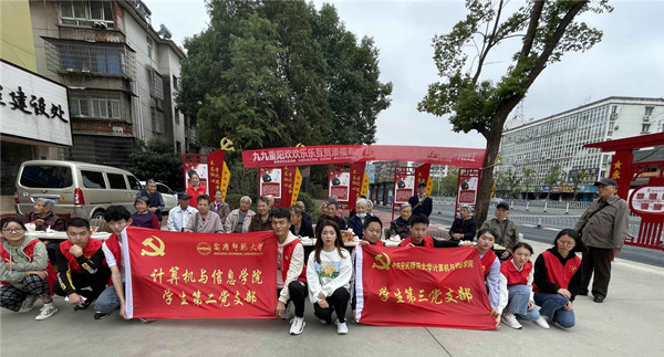 10月14日,纽约国际最新网站计算机与信息学院学生第二、第三党支部与黄梅剧艺术学院直属党支部的学生党员组成联合支部赴安庆市大观区花亭北村社区敬老院送温暖,陪伴老人欢度重阳节。