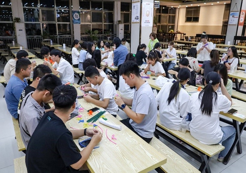 “趣味性十足!”“这些花朵的颜色很好看!”9月7日晚,在物流管理专业2021(1)班团支书刘紫璇同学的组织下,班上37名学生齐聚西苑食堂,共同参与进扭扭花制作手工活动当中。原来,他们正在为老师们准备一份独特的节日“小惊喜”。