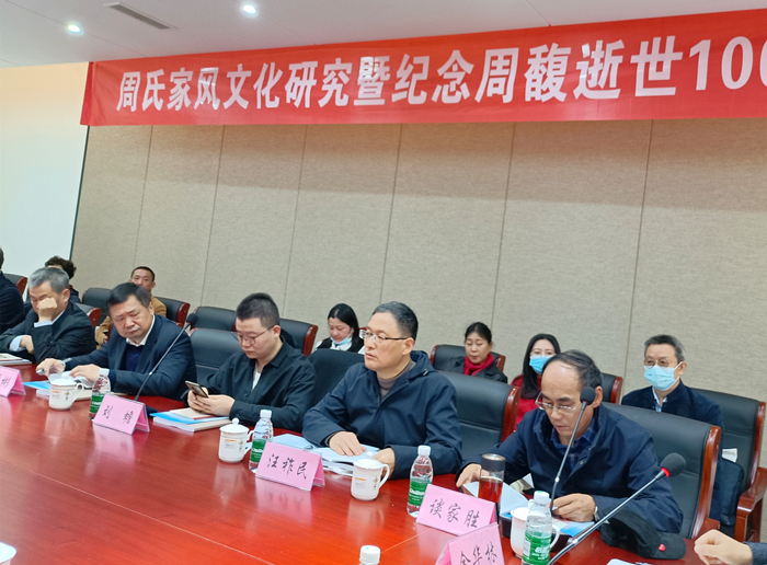 在学术交流会上,汪祚民教授就周馥祠堂碑记研究中发现的问题进行了交流与探讨,汪长林副教授从文献学的角度探讨了周氏家族文化研究资料平台建设的重要性。