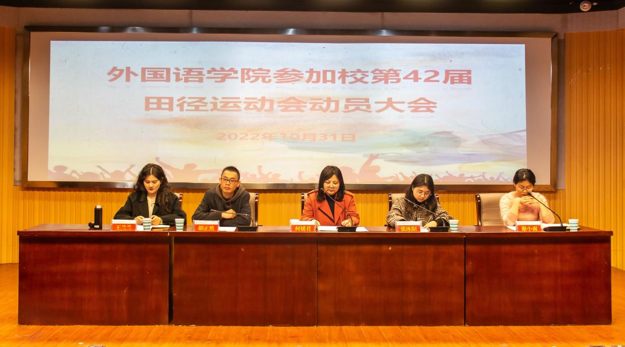 10月31日,外国语学院于E503召开2022年秋季田径运动会动员大会。学院党委副书记何媛君、学工组全体教师、全体运动员及学生骨干参会。