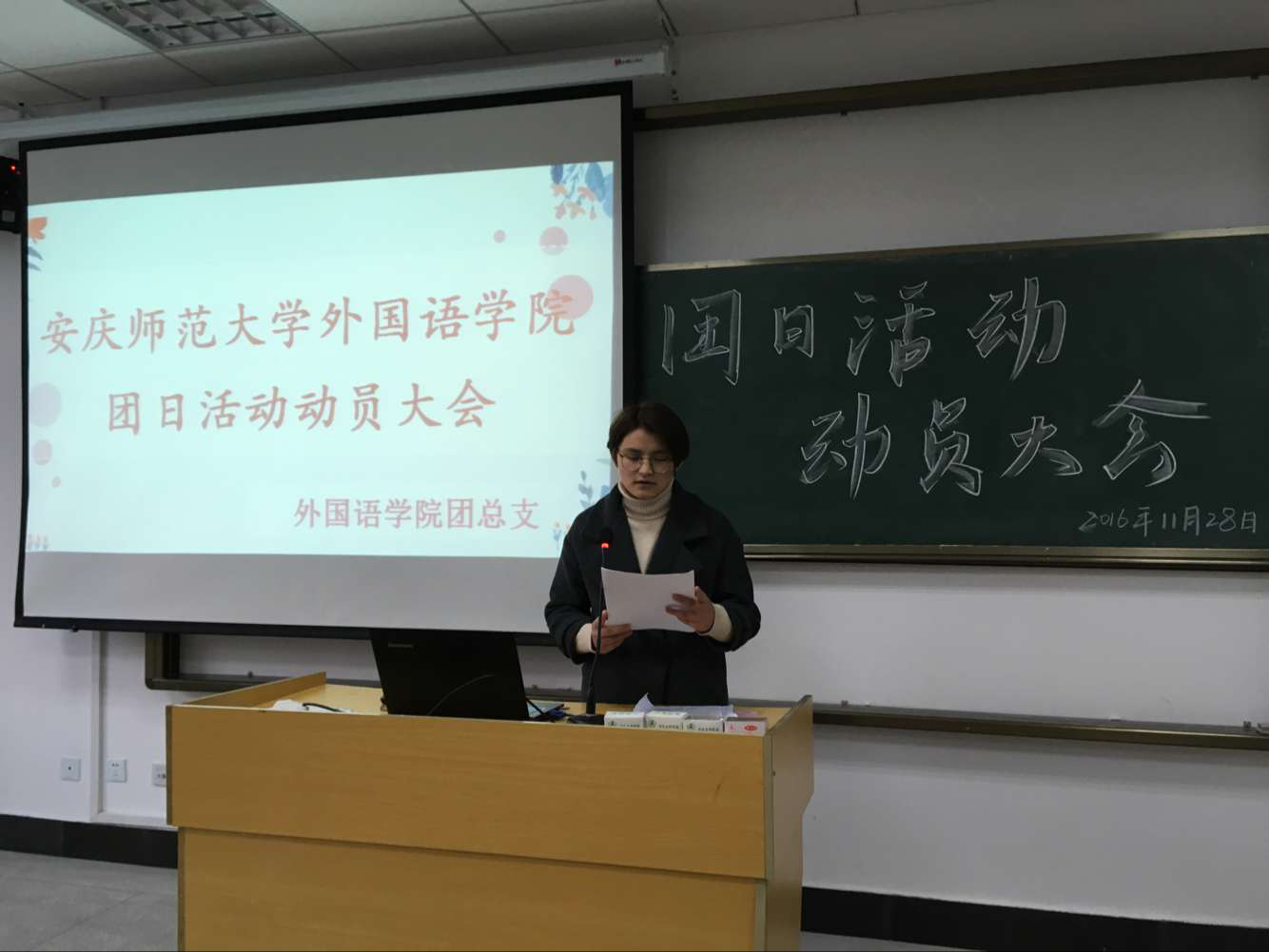 近日,外国语学院召开团日活动动员大会。会议由院团总支负责同学主持,14、15、16级各班级团干参加会议。