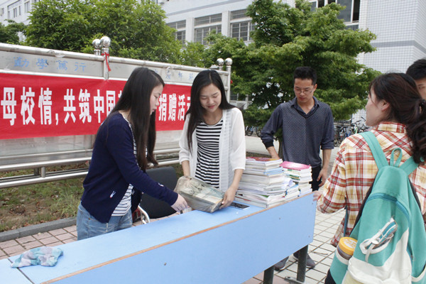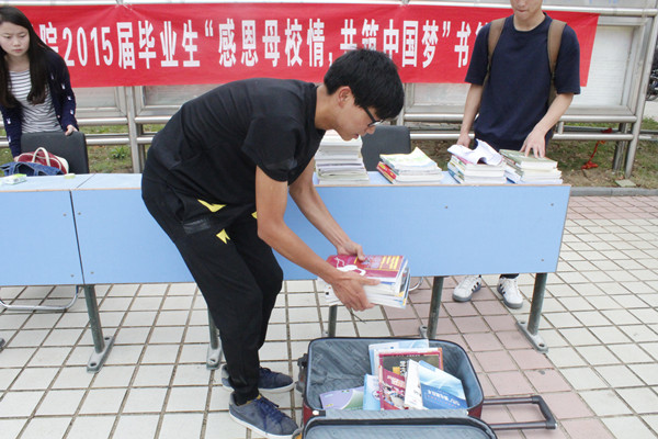 “带不走的,留不下的送给学弟学妹吧……”5月6号早,传媒学院在敬敷广场举行2015届毕业生“感恩母校情,共筑中国梦”书籍捐赠活动。